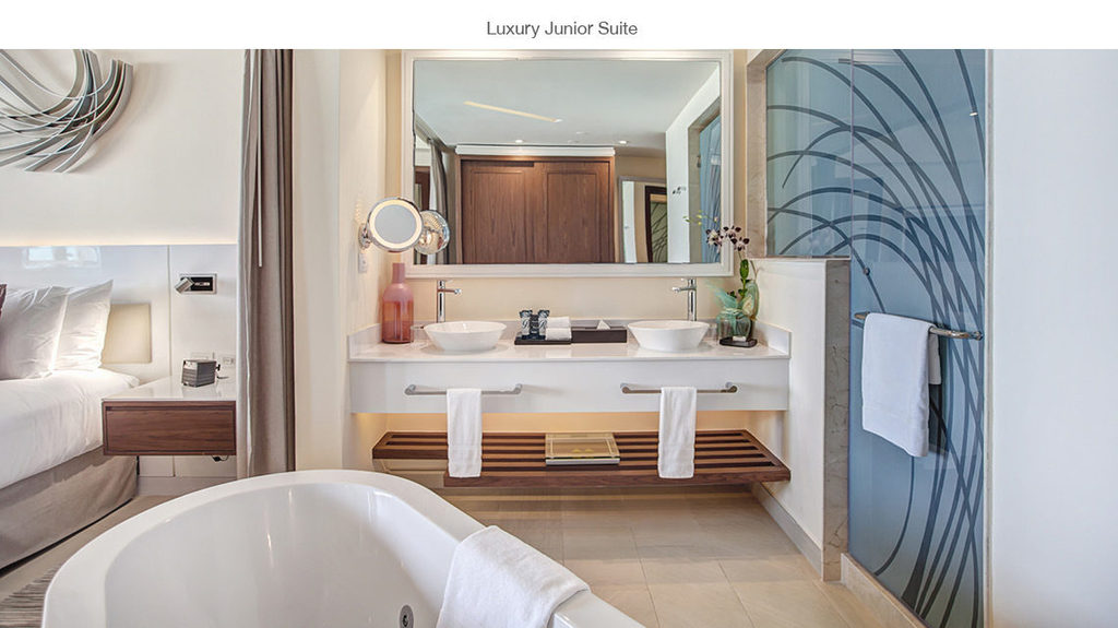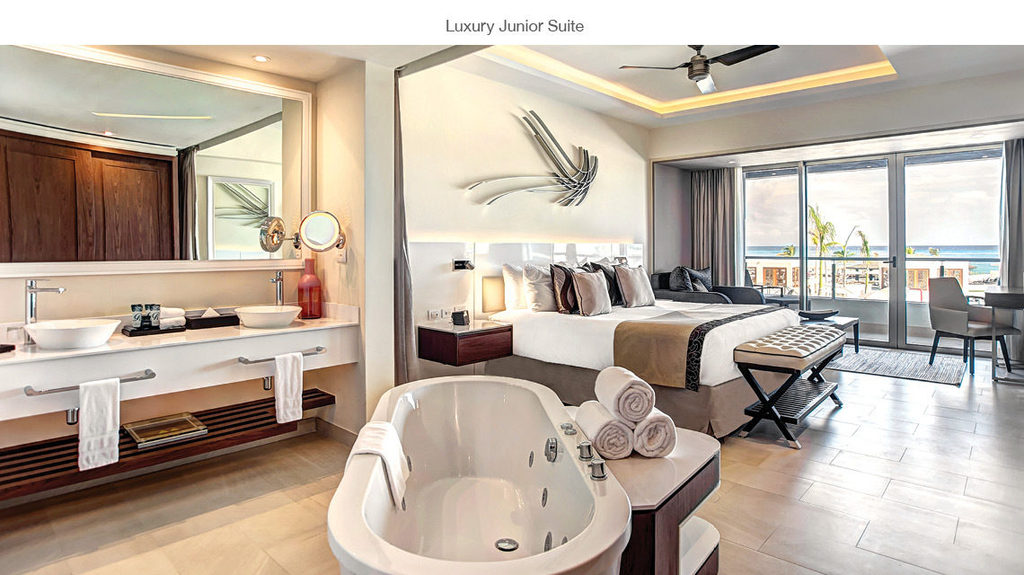 All-in Luxury® features elegantly styled suites, worldclass reservation free dining and exceptional amenities within this luxury property. Royalton Blue Water’s All-in Luxury® concept includes: • 228 modern luxury suites • Stay at 1, Play at 2 with Royalton White Sands • Unlimited reservation-free dining • Premium drinks and handcrafted cocktails • Royalton signature DreamBed™ with high thread count sheets • All-In Connectivity™ with free high-speed Wi-Fi resort wide for all your devices, in-room Bluetooth speakers, USB charging stations, and free calls to North America and most of Europe • Royalton Signature rain shower • Satellite television with specialty channels • Sports Event Guarantee™ • Non-motorized watersports • Fitness center with modern equipment • Daily entertainment and nightly shows • Supervised programming for children and teens • Air-conditioned lobby • 24-hour room service